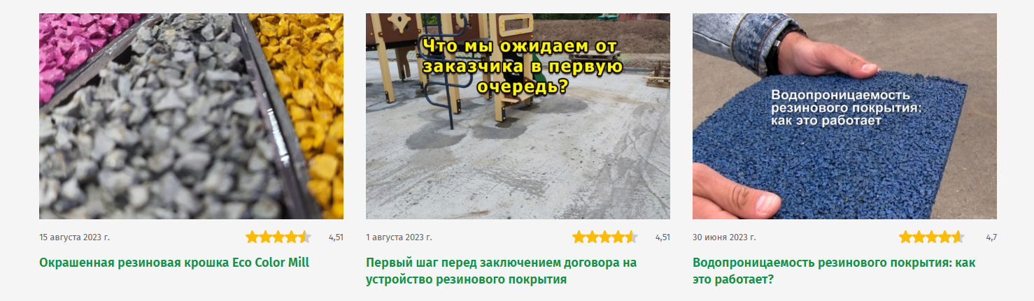 Клиент: производство травмобезопасных покрытий из резиновой крошки и услуги по укладке покрытия. На начало сотрудничества у клиента уже было 2 сайта по продаже резиновой крошки для спортивных объектов и детских площадок на различных CMS, которые сложно поддавались администрированию и SEO-оптимизации (на тот момент клиент продавал только саму продукцию для обустройства спортивных и детских площадок).